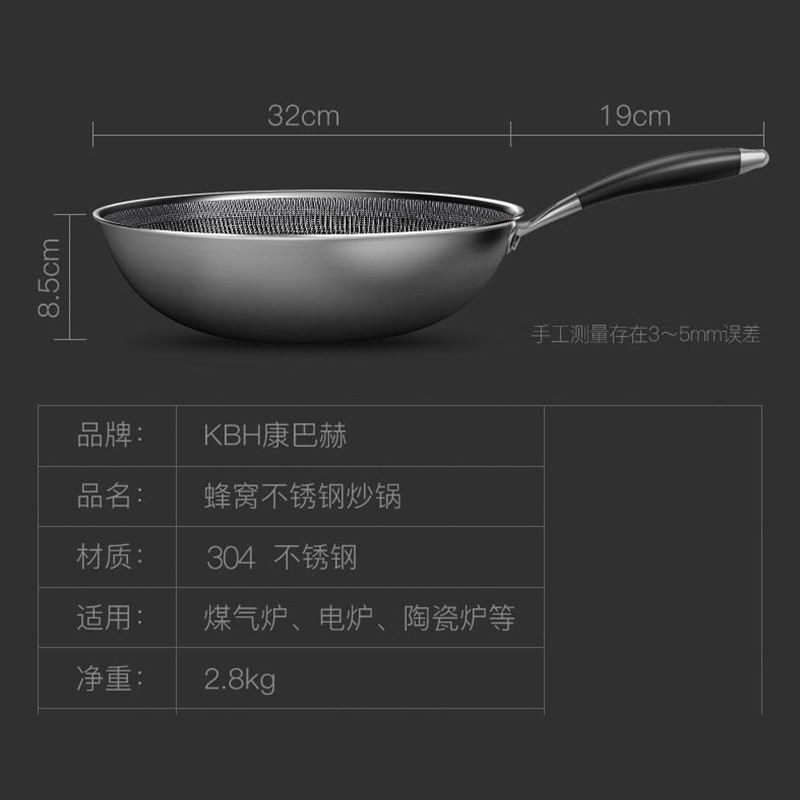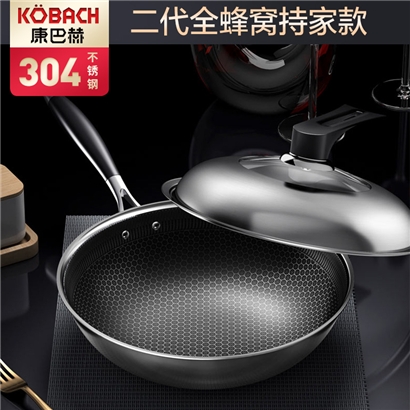康巴赫二代系列持家款蜂巢304炒锅【送钢铲+钢勺!】【304不锈钢/银色】
