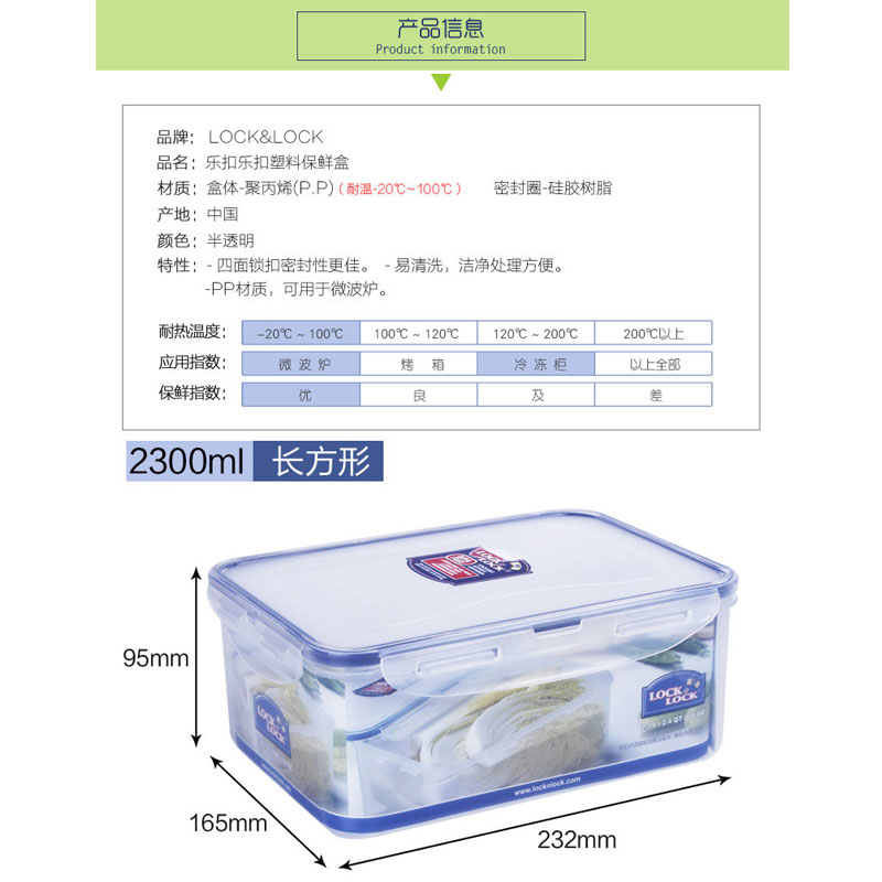 保鲜盒塑料大容量冰箱密封收纳盒 2300ML*2【塑料/半透明】