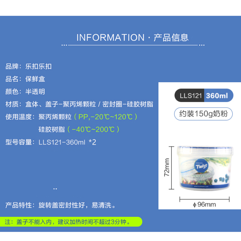 圆形塑料保鲜盒两只装 360ML*2【塑料/透明】