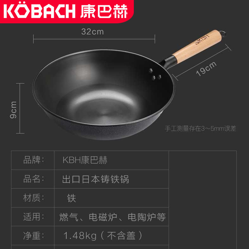 康巴赫炒锅32cm无涂层精制铸铁炒菜锅【铸铁/黑色】