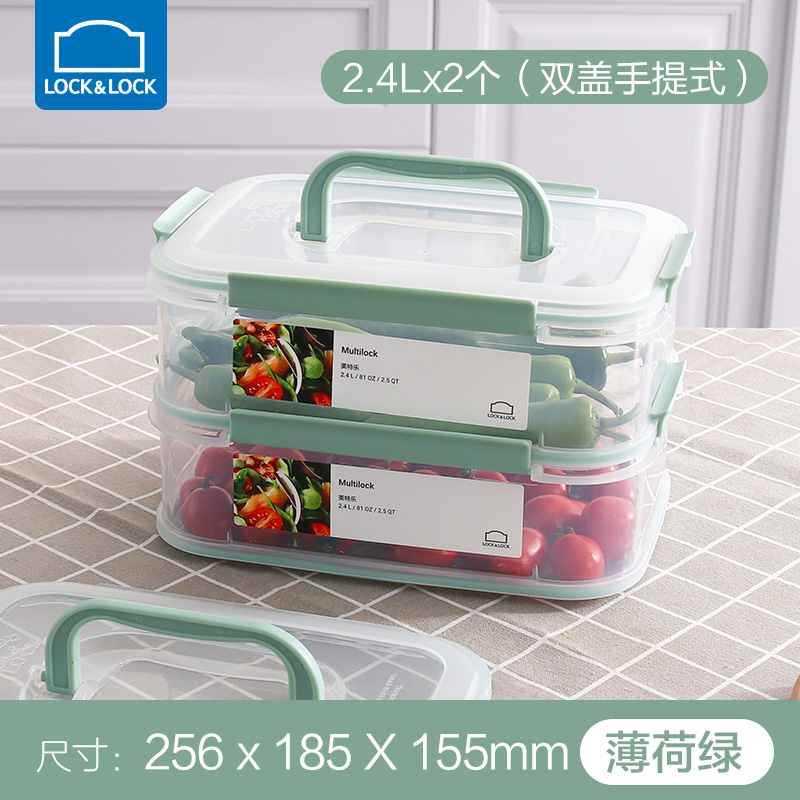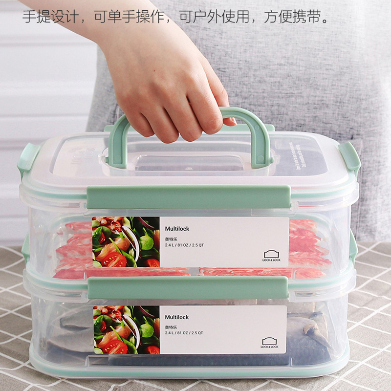 美特乐保鲜盒套装(带提手)-2.4L*2【塑料/半透明】
