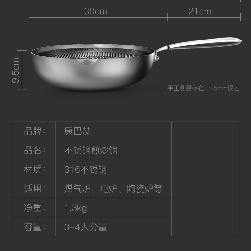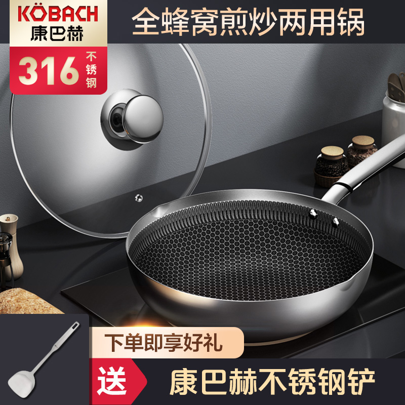 【购买加送清洁膏1瓶】康巴赫316不锈钢煎炒两用锅30cm(送不锈钢锅铲)【316不锈钢/图片色】