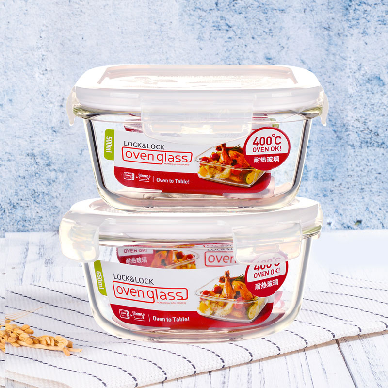 耐热玻璃保鲜盒微波炉适用饭盒500ML+650ML【玻璃/透明】