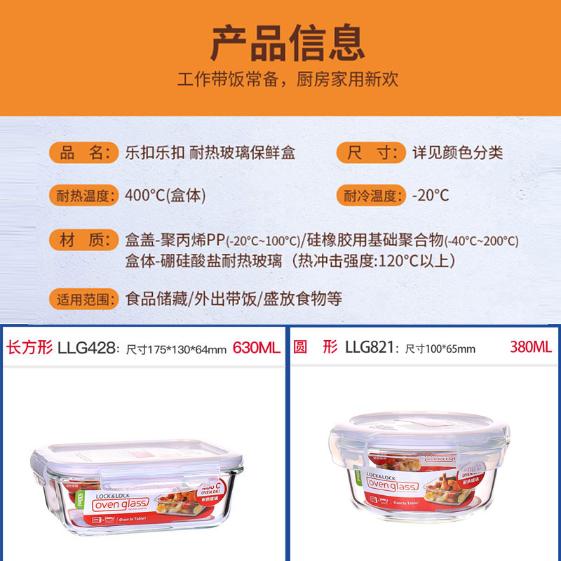 耐热玻璃保鲜盒微波炉适用饭盒630ML+380ML【玻璃/透明】