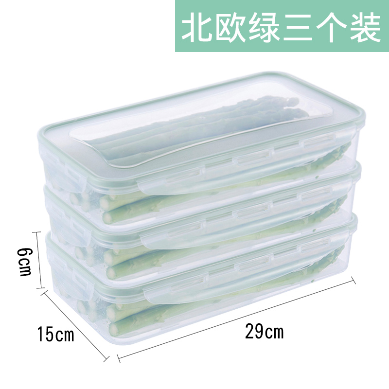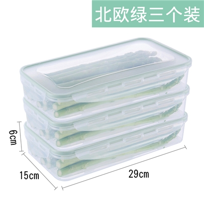 可沥水长方形保鲜盒3个装【pp(食具材质)/绿色】