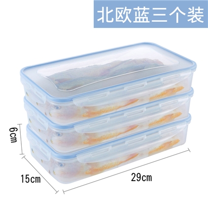 可沥水长方形保鲜盒3个装【pp(食具材质)/蓝色】