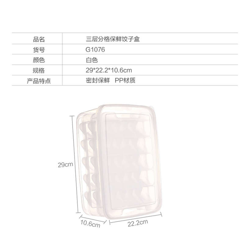 三层分格保鲜饺子盒【PP/透明色】