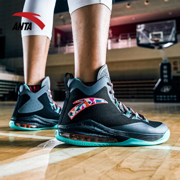篮球鞋>>安踏 ANTA官方旗舰 91711101 篮球鞋气垫球鞋运动鞋男神盾耐磨高帮透气比赛战靴 深灰/黑/咖玛青 8.5(男42)