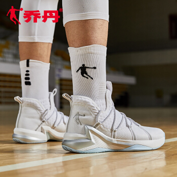 乔丹篮球鞋男高帮透气耐磨减震实战球鞋男子潮流运动鞋 白色/银色 41