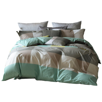 被套>>水星家纺出品 百丽丝 全棉格子四件套 纯棉床单被套 中性简约 星尚旋风 双人 1.8米床 220*240cm