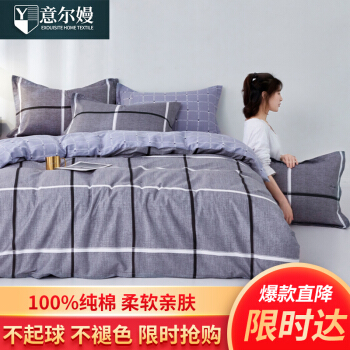 意尔嫚 全棉被套单件 纯棉被罩单人学生宿舍床上用品 155*205cm 巴洛克灰