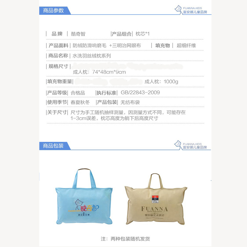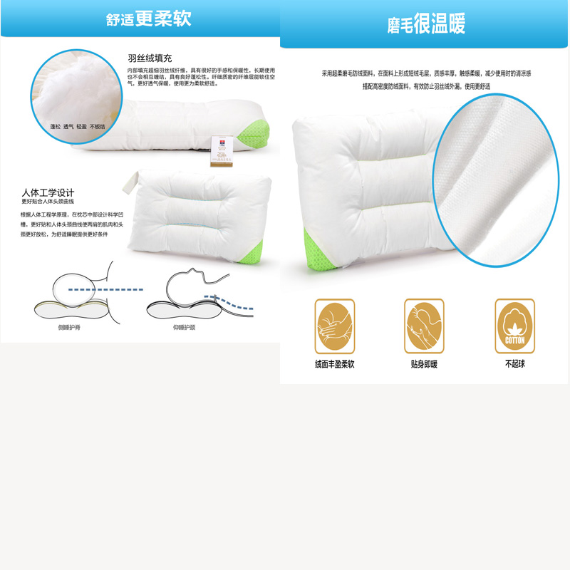 水洗羽丝绒枕(单只 74*48cm)【面料:纯棉磨毛 填充:超细纤维(1000克)/白】