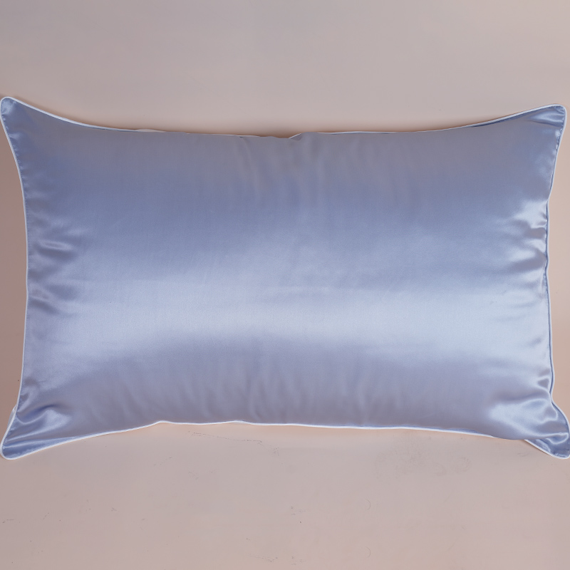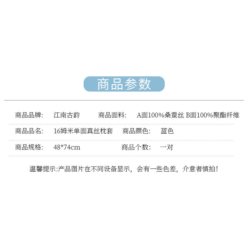 【超值单品】一对装单面真丝枕套桑蚕丝纯色丝滑护肤柔软奢华枕套【A面桑蚕丝B面聚酯纤维/蓝色】
