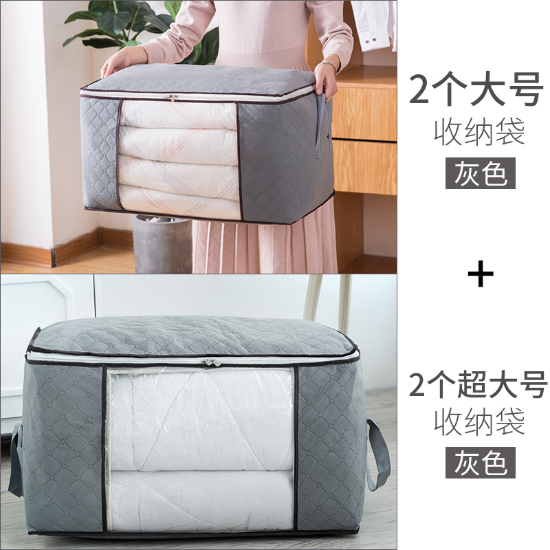 4个衣物棉被收纳袋【无纺布/灰色】
