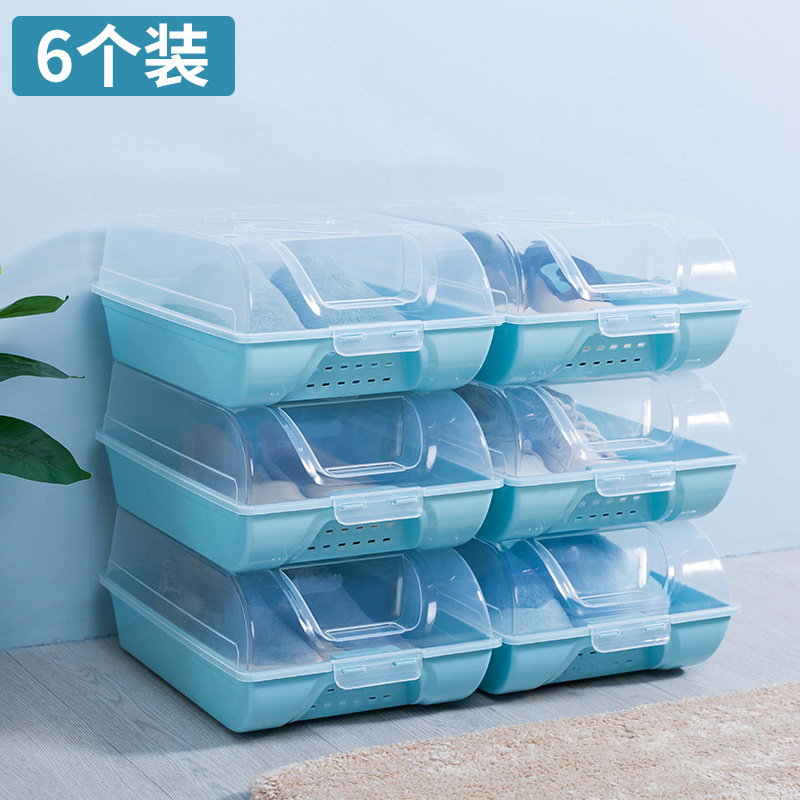 6个透明可视鞋盒收纳盒【PP/粉晶蓝】
