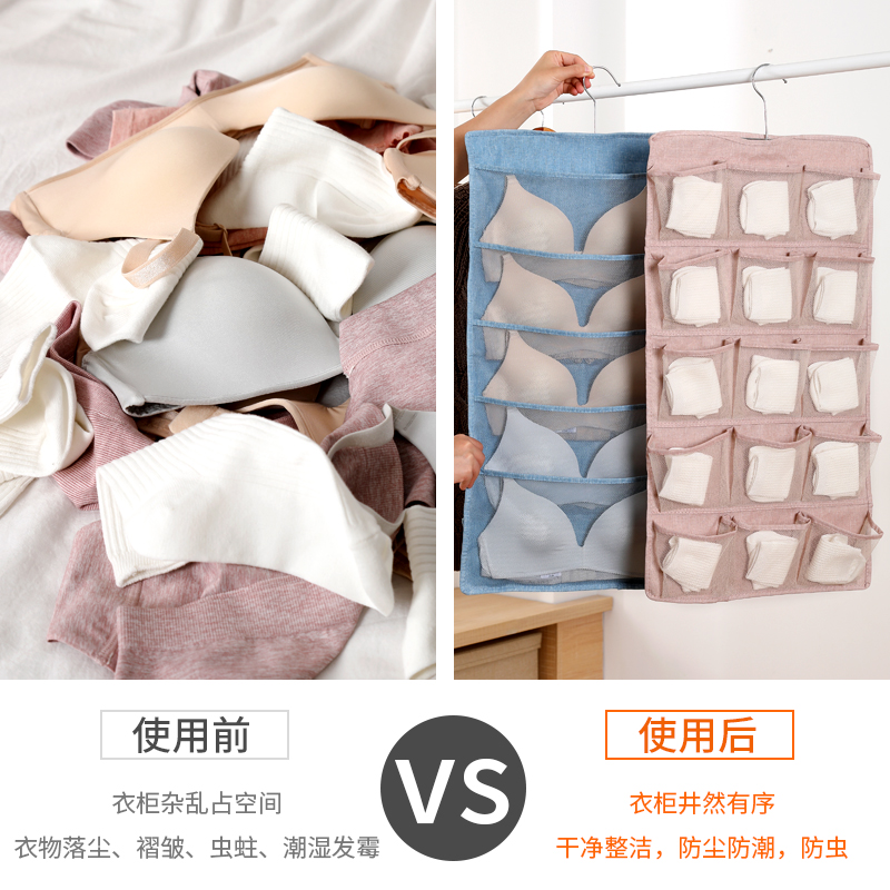 双面袜子内衣收纳袋2个【阳离子/颜色自选】