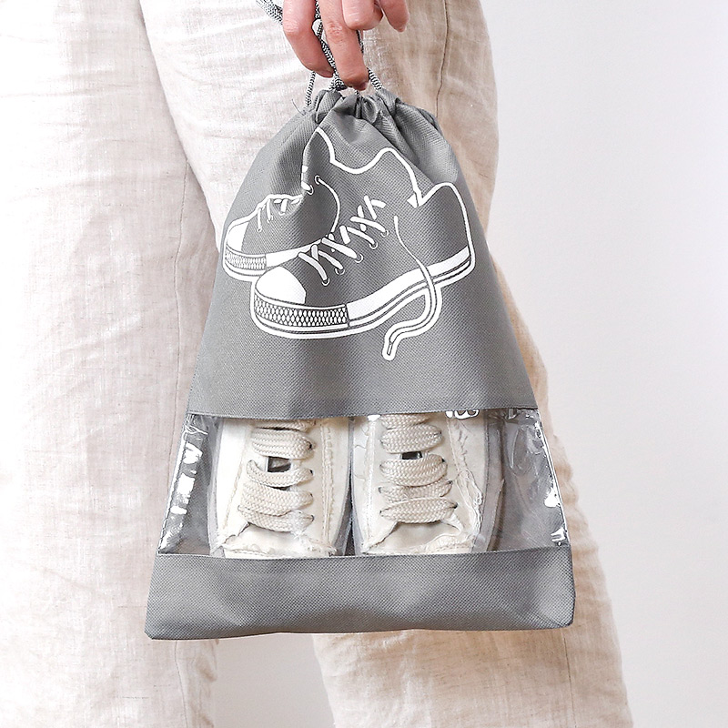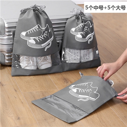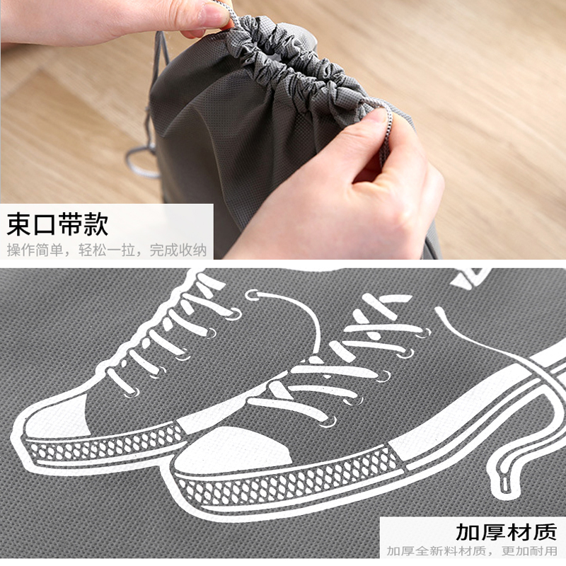 束口鞋袋收纳袋10个【无纺布/灰色】