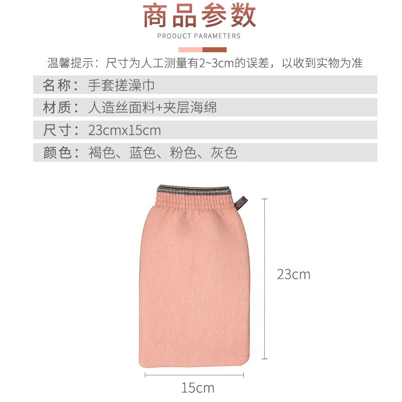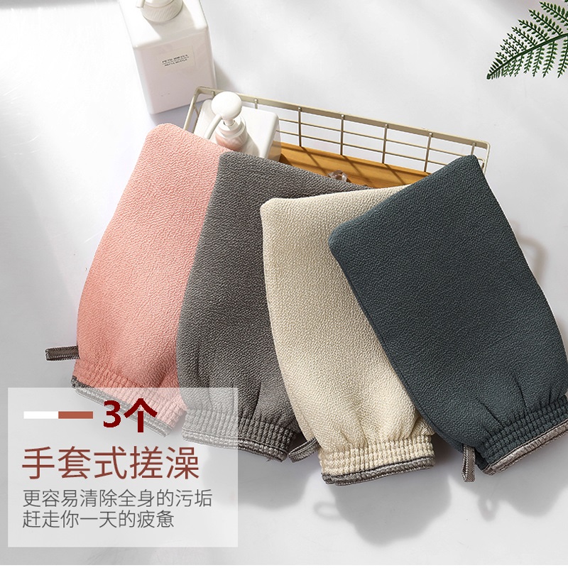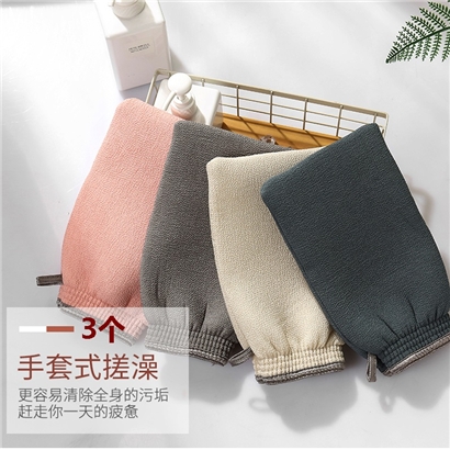 沐浴手套双面搓澡巾3个【人造丝面料+夹层海绵/颜色随机】