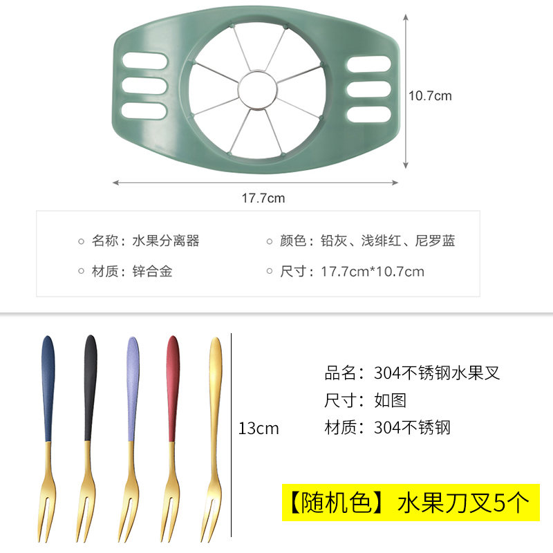 切水果神器+水果刀叉套装【锌合金+不锈钢/尼罗蓝+随机色】