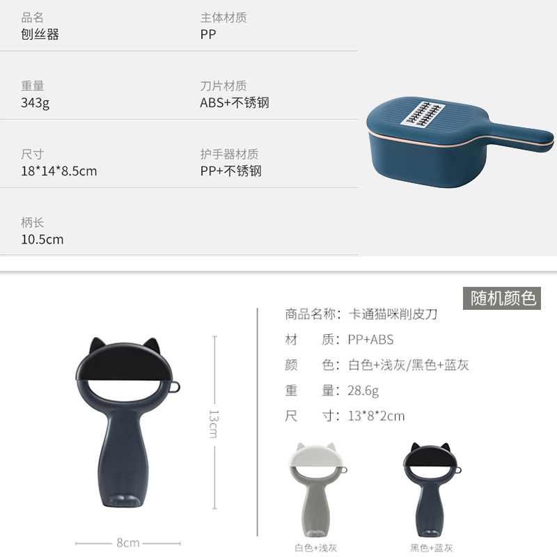 多功能刨丝器+去皮器套装【ABS+不锈钢/PP+ABS/随机色】
