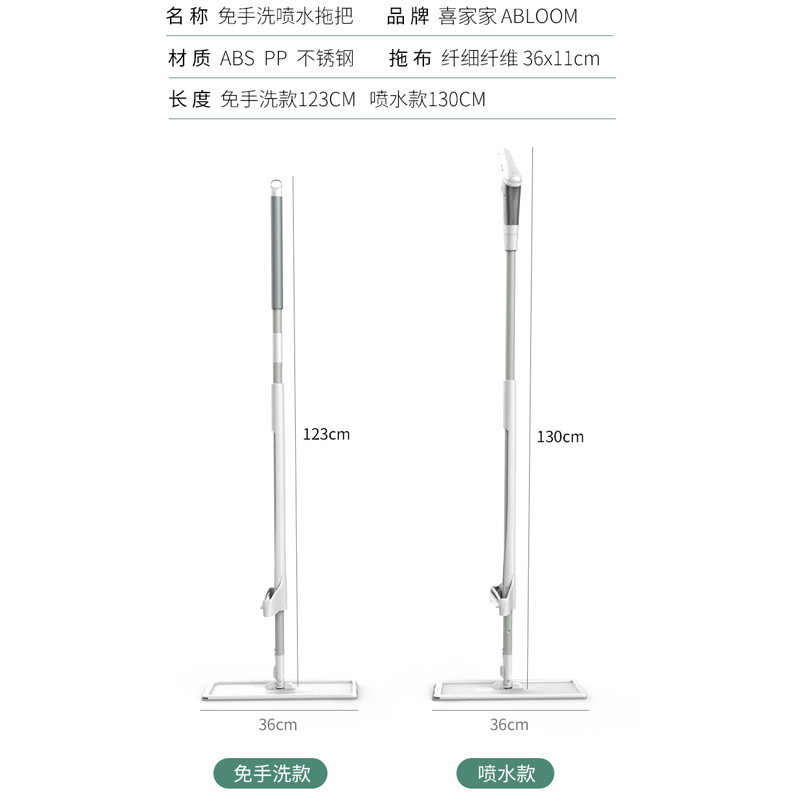 免手洗平板拖把+2个拖把夹【ABS+PP+不锈钢/图片色】