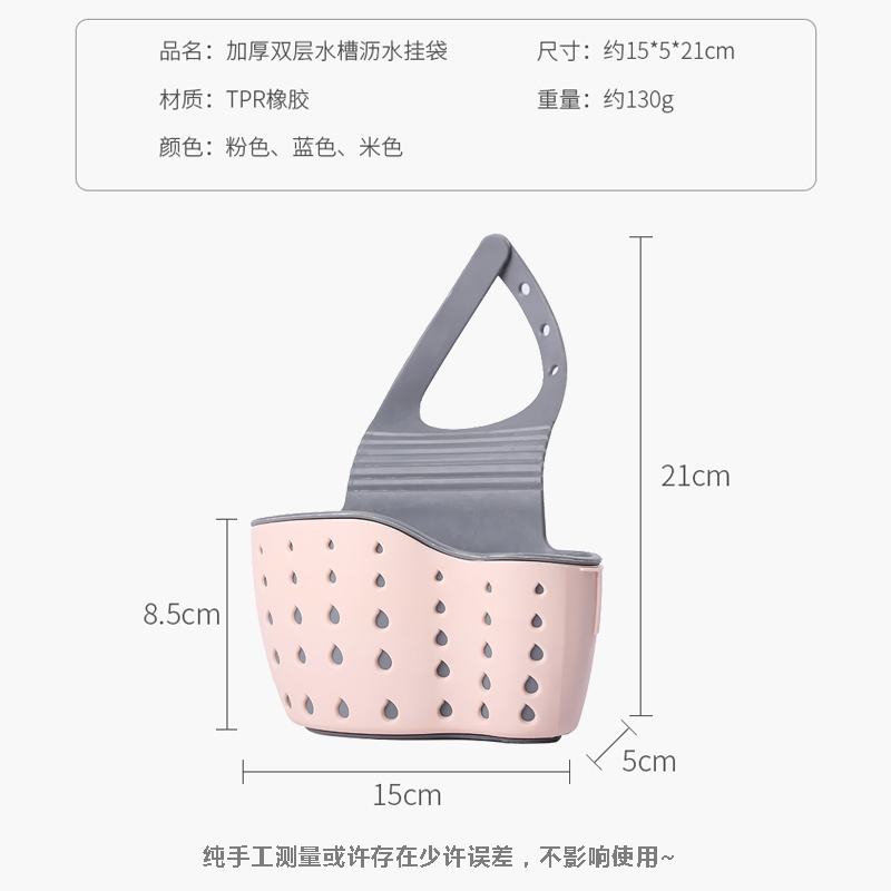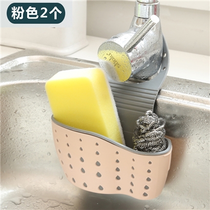 双层水槽挂袋2个【TPR橡胶/粉色】