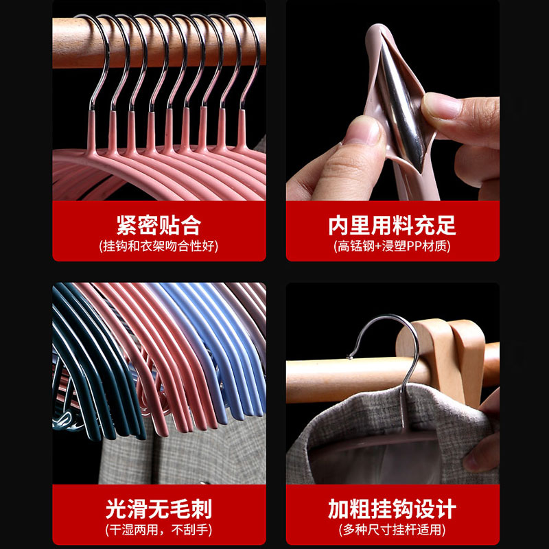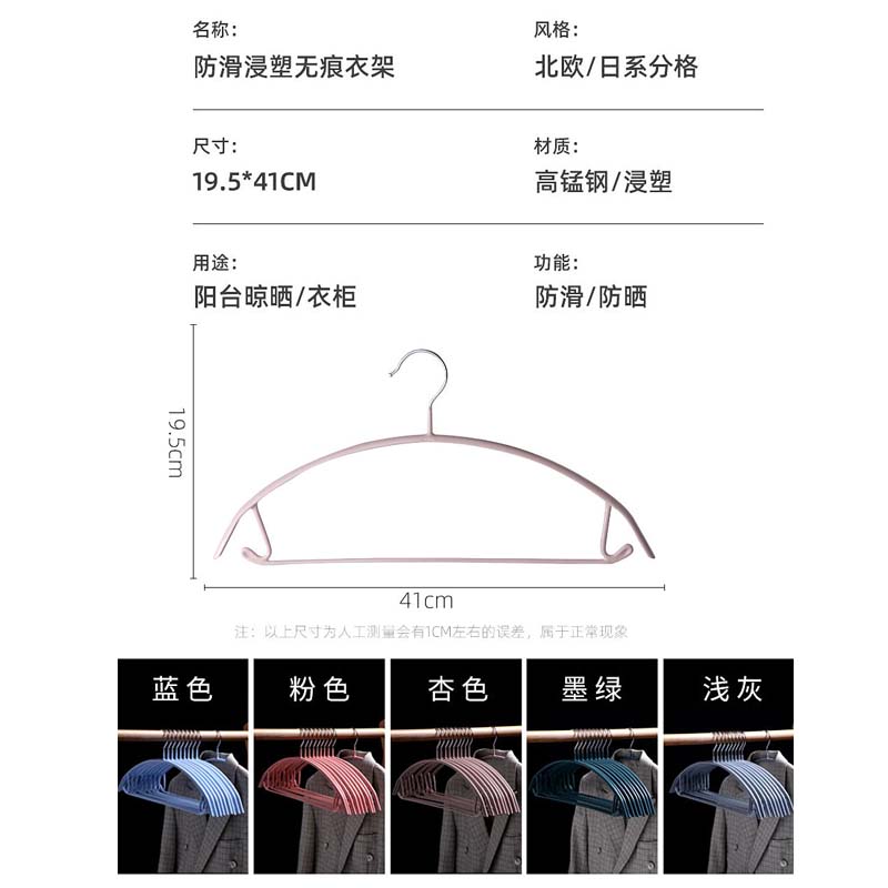 圆弧防滑衣架30个【高锰钢/浸塑/浅灰】