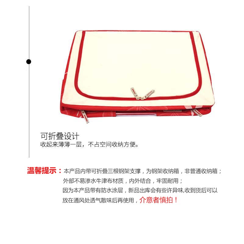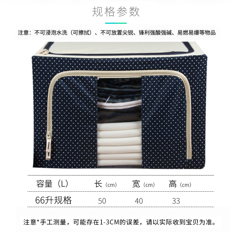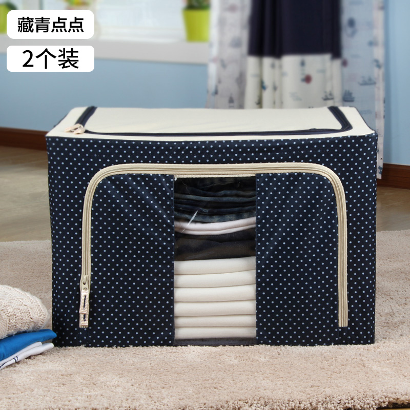 带钢架牛津布收纳箱2个【牛津布+三钢架/藏青色点点】