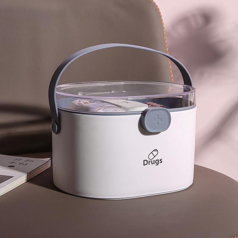 家用药品收纳箱双层【PP+高透塑料盖+硅胶/简约白】