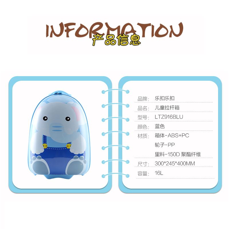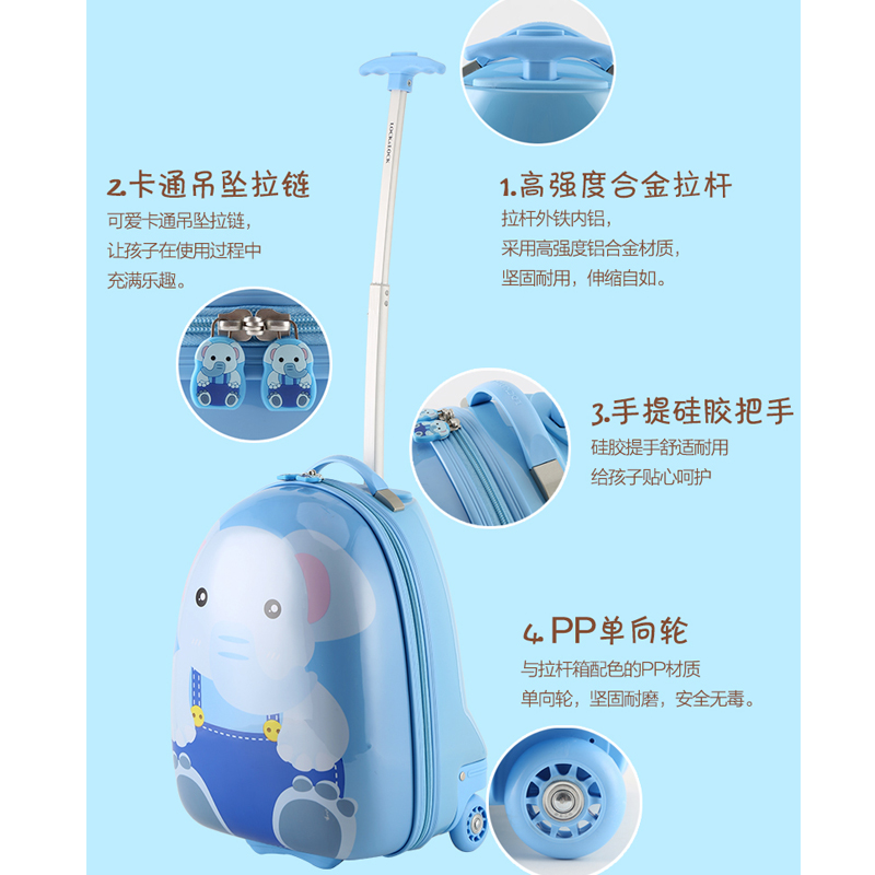 卡通儿童拉杆箱 可爱学生拉杆书包男女【塑料/蓝色】