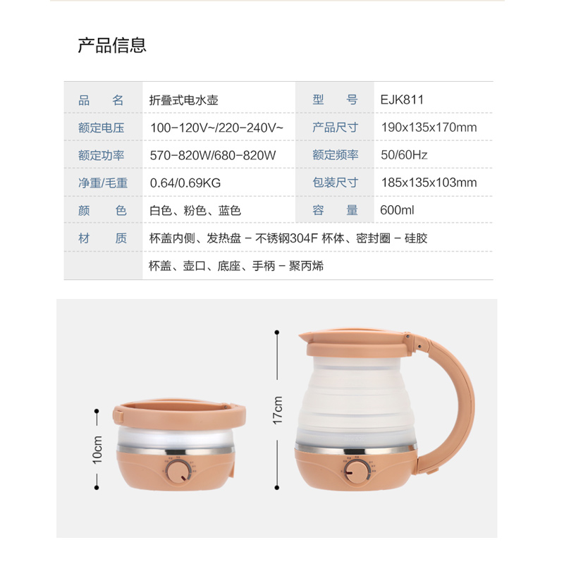 乐扣乐扣可折叠式电热水壶-0.6L【食品级硅胶+PP材质/颜色自选】