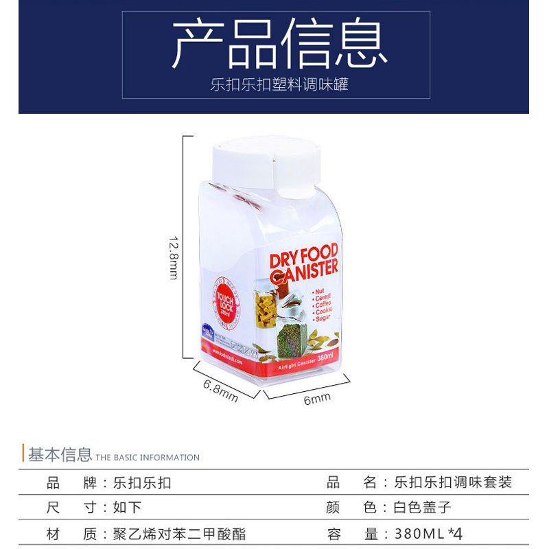 乐扣乐扣塑料厨房家用调料瓶 4件【塑料/白色】