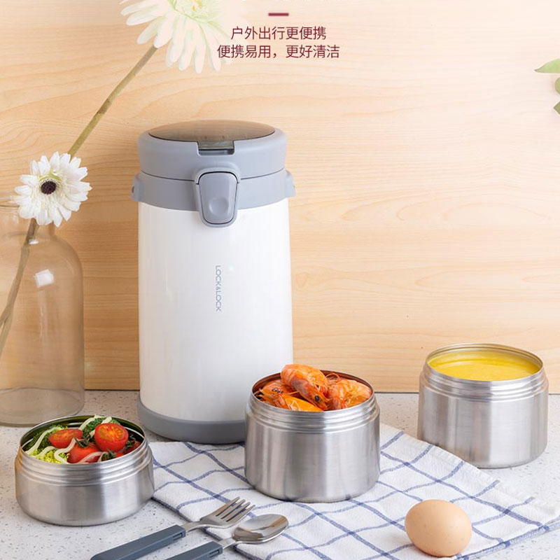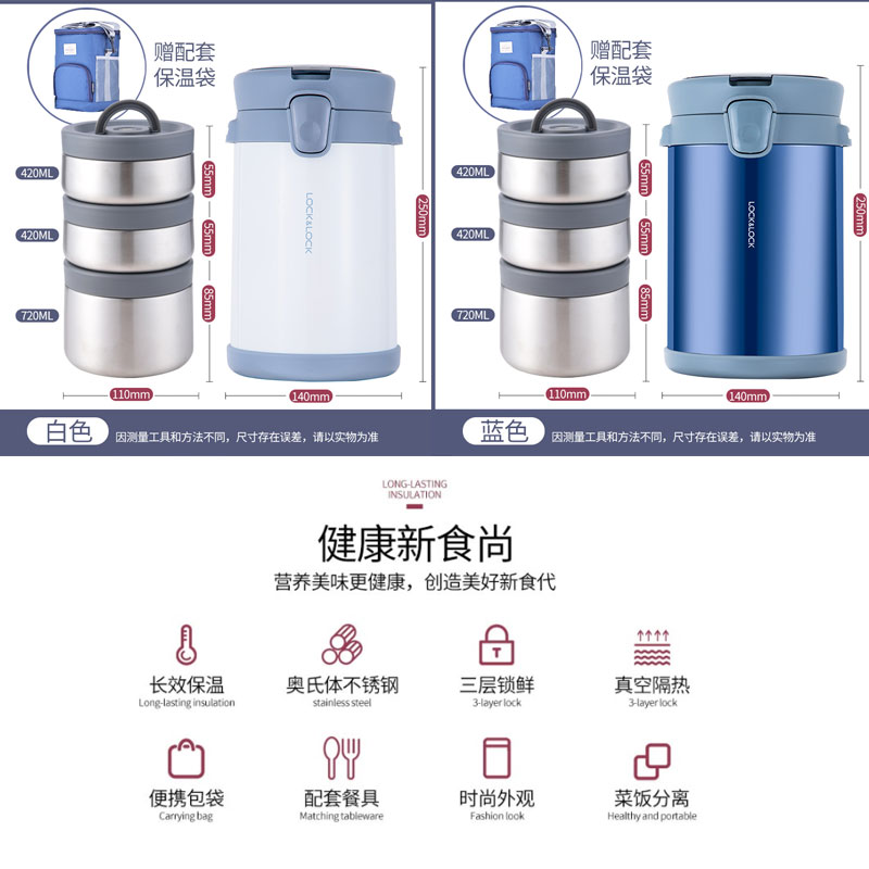 2000ML便携背带不锈钢分隔保温饭盒【304不锈钢/颜色可选】
