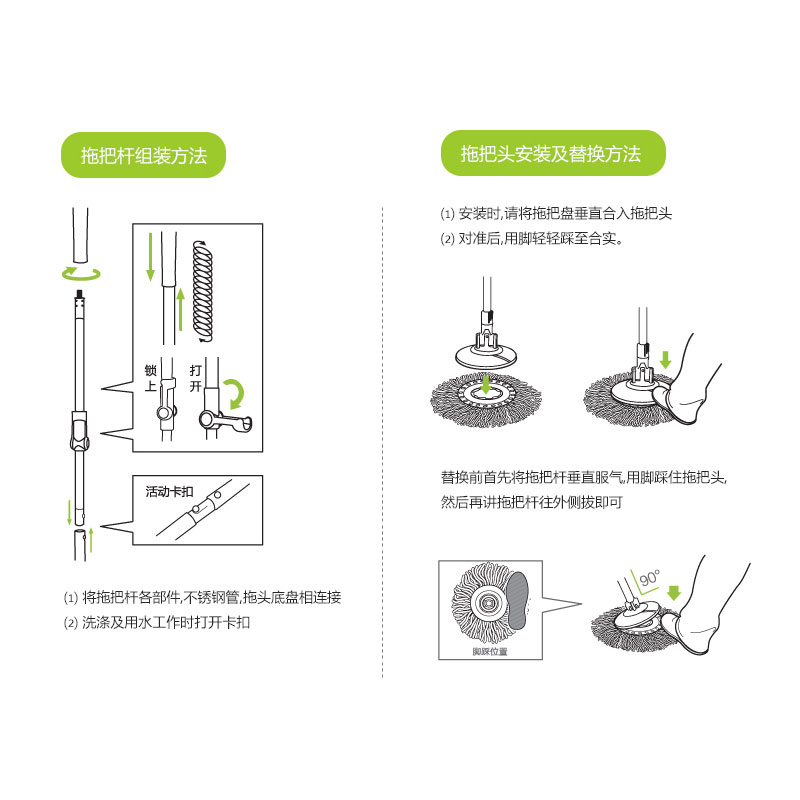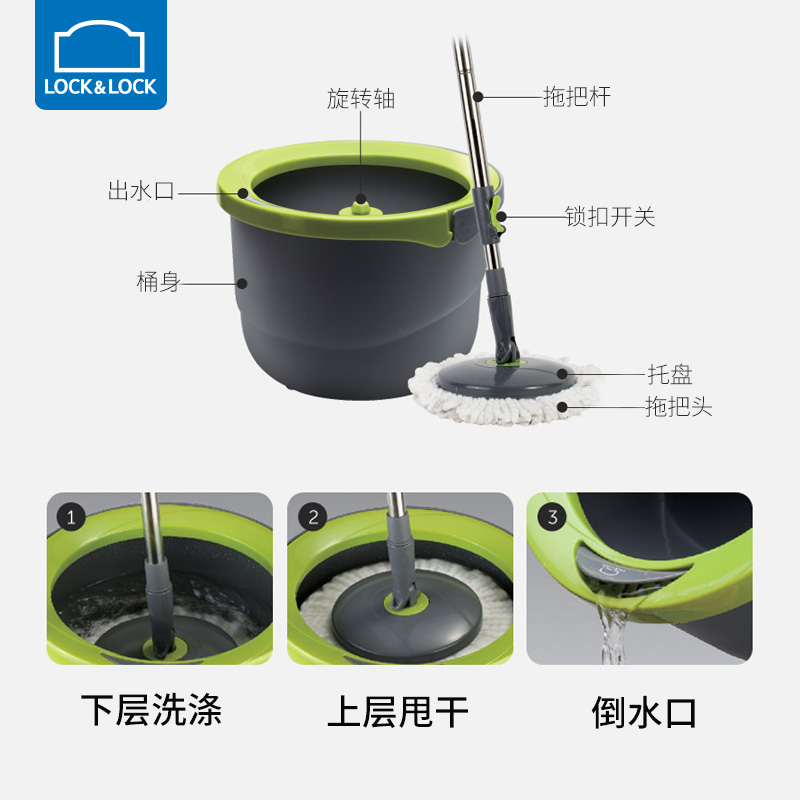 单桶旋转拖把自动甩水桶【PP+PE、ABS/不锈钢、超细纤维/绿色】