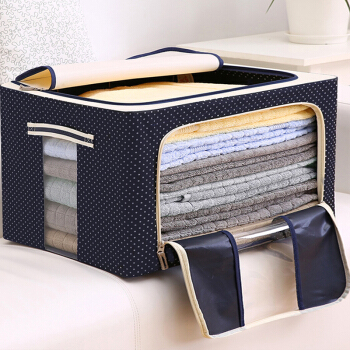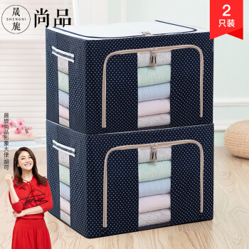 晟旎尚品 88L 特大号2只装牛津布双面可视收纳箱 衣服杂物整理箱布艺收纳盒储物箱 藏青圆点