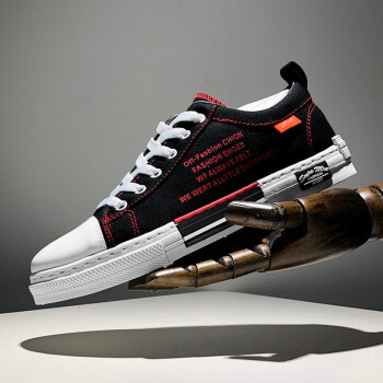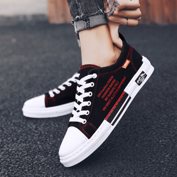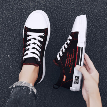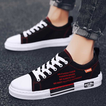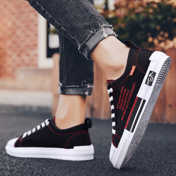 男鞋夏季新款休闲鞋男透气帆布鞋男百搭布鞋时尚四季板鞋低帮鞋男潮流户外运动鞋刑释运动鞋 Q88-黑红 41