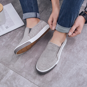 回力(Warrior) 男款低帮舒适一脚蹬休闲懒人帆布鞋 WXY-966 灰色 42