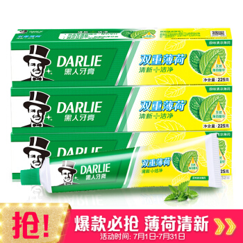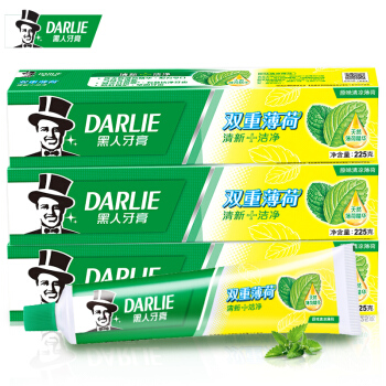 黑人(DARLIE)双重薄荷牙膏套装225g×3支(共675g) 清新口气 有效防蛀(新旧包装随机发放)