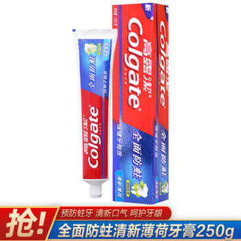 高露洁(Colgate) 全面防蛀清新薄荷牙膏 250g 清新口气 强健牙釉质(新老包装随机发)