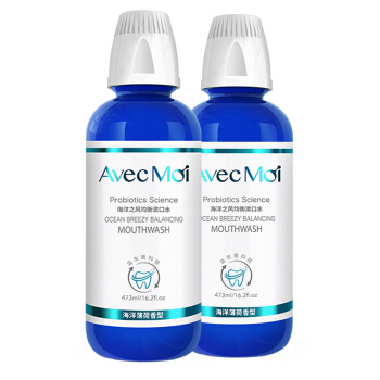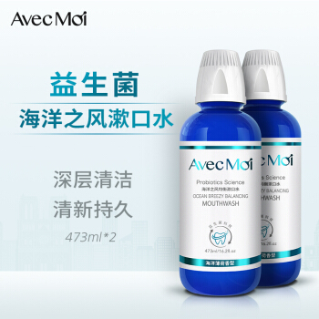 AvecMoi 漱口水 海洋之风益生菌 便携无酒精 473ml*2瓶套装(清新口气 口腔清洁)
