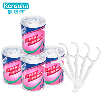 健舒佳 牙线棒 专业洁齿弹韧圆线80支x4筒 清洁齿缝超细牙线剔牙签 优雅款