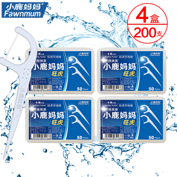 小鹿妈妈 圆线护理牙线棒50支X4盒 清洁齿缝家庭装牙签超细便捷(多种款式随机发货)