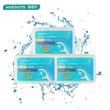 屈臣氏 圆线护理牙线棒50支X3盒 清洁齿缝家庭装超细便捷