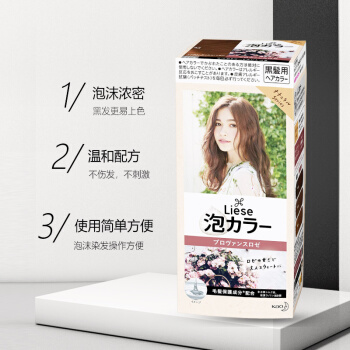 日本进口 花王(KAO)Prettia泡沫染发膏 普罗旺斯玫瑰茶棕 (1液34ml 2液66ml 护发素8g )植物泡泡不伤发