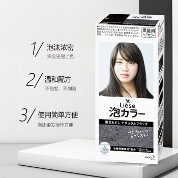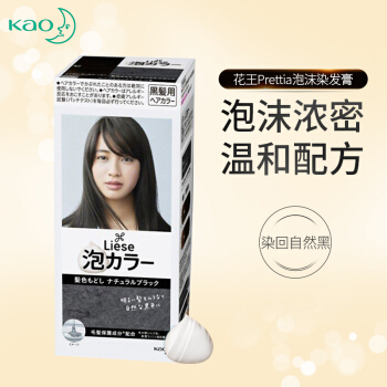 烫发>>日本进口 花王(KAO)Prettia泡沫染发剂 黑色(1液34ml 2液66ml 护发素8g )植物泡泡不伤发