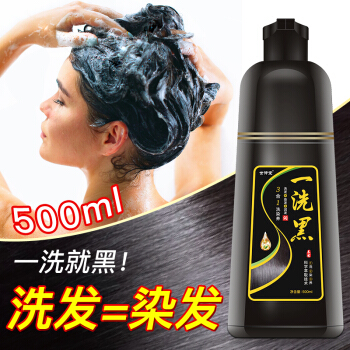 世仲堂一洗黑染发剂(黑色500ml) 一支黑洗发水泡泡植物不沾头皮一梳黑发焗油膏泡沫染头发男女士棕黑染发膏 |