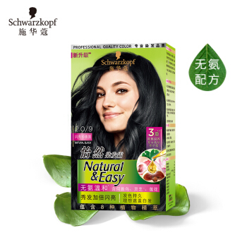 烫发>>施华蔻(Schwarzkopf)怡然染发霜2.0/9闪亮珍珠黑(植物染发剂膏 无氨遮白 何首乌精华 男女士)(新老包装随机)