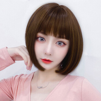 蔓茵假发女短发bobo头真发丝递针中分仿真空气刘海波波头自然逼真圆脸假发套网红学生黑 自然黑【仿真发丝】