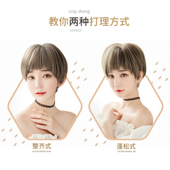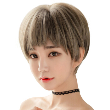 美元素 假发女狗啃式二次元刘海短发自然逼真奶奶灰不规则bobo头女士假发套 图片色(青木亚麻灰)