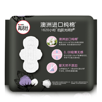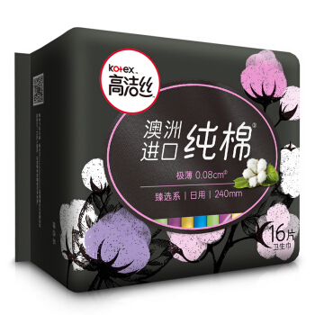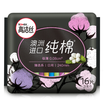高洁丝Kotex 臻选澳洲进口纯棉0.08极薄240mm16片 日用超薄卫生巾